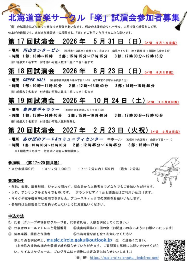 「楽」HP https://music-circle-gaku.jimdofree.com/
